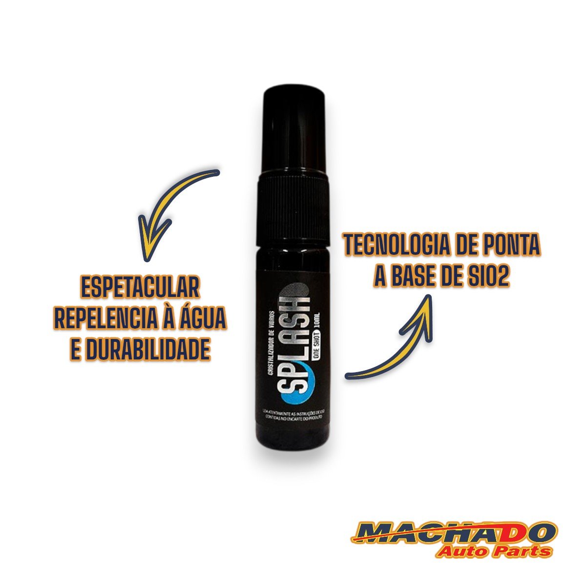 esfrute de uma visão mais clara e segura em dias de chuva com espetacular repelência à água e durabilidade com o cristalizador de vidros Splash da Cadillac. Graças a sua tecnologia de ponta a base de SiO2, Splash cria uma barreira ultra-hidrofóbica sobre vidros e espelhos que faz com que a água simplesmente fuja, proporcionando uma visão mais nítida mesmo em dias de chuva intensa. Sua aplicação por meio de borrifador spray é extremamente fácil e rápida e pode ser aplicada em vidros e espelhos do seu veículo, sem distinção. Depois de ancorado, Splash cria um filme de proteção que vai proteger os vidros contra raios UV e manchas, reduzindo a necessidade de limpeza frequente dos vidros e prolongando a vida útil da superfície. Sua fórmula avançada garante uma repelência à água de até 6 meses. Os dias chuvosos não serão mais um problema, com Splash da Cadillac!