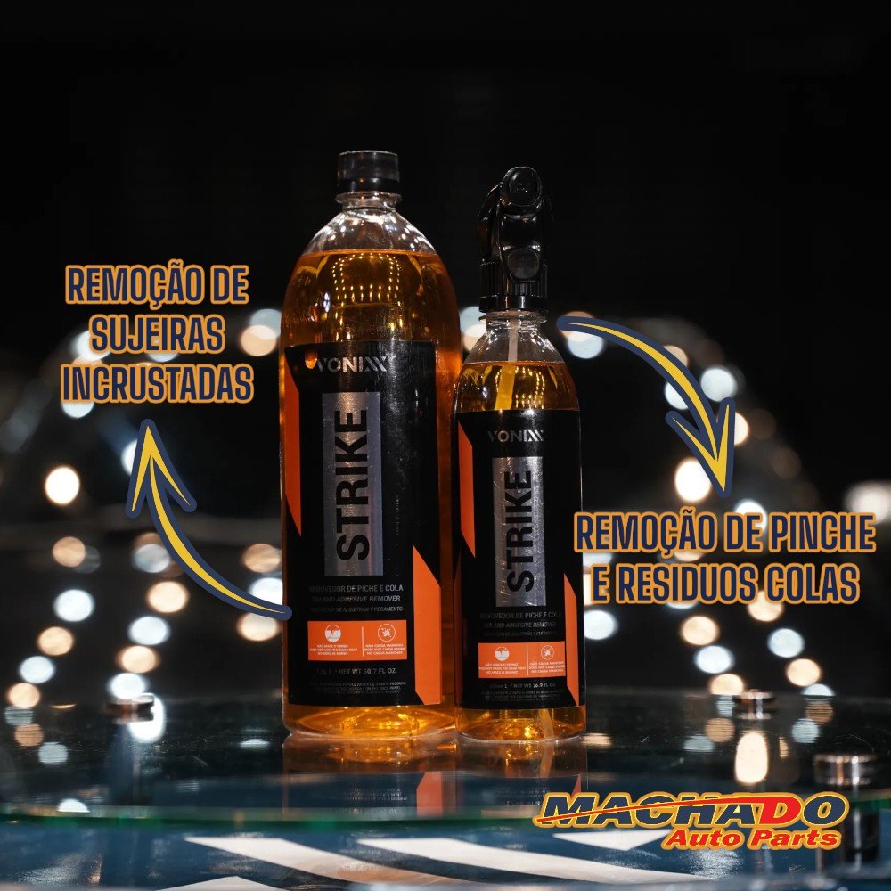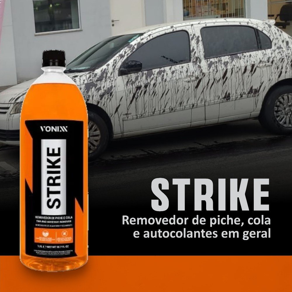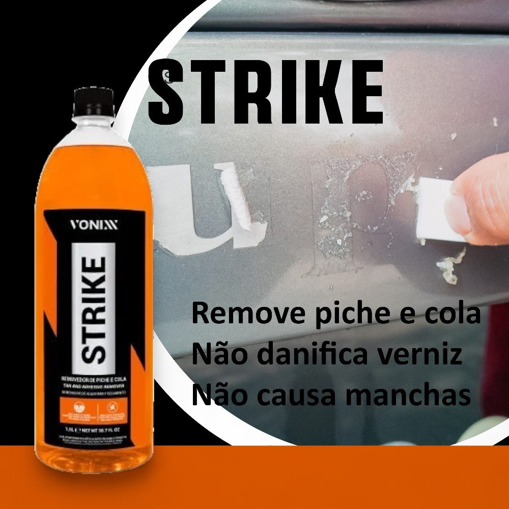 O Strike Removedor de Piche e Cola da Vonixx é um agente solubilizante, desenvolvido para remoção de piche e resíduos de colas deixados por adesivos e etiquetas autocolantes em geral. Sua composição balanceada remove grande parte de colas impregnadas e piche.