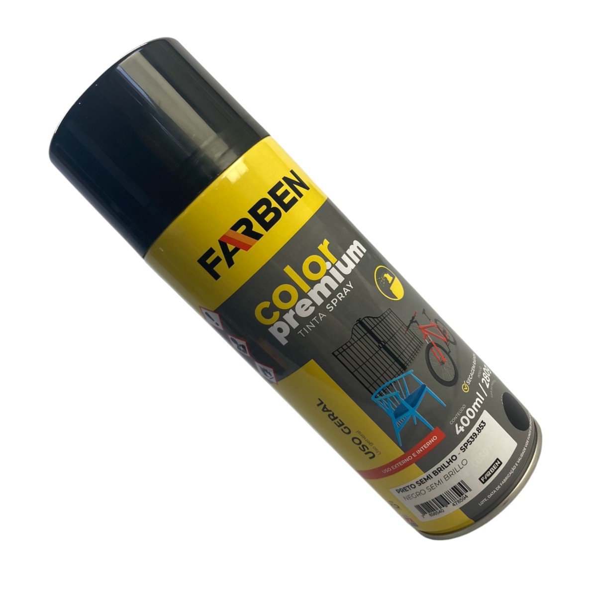 Tinta Spray Preto Semi Brilho Uso Geral 400ml FARBEN