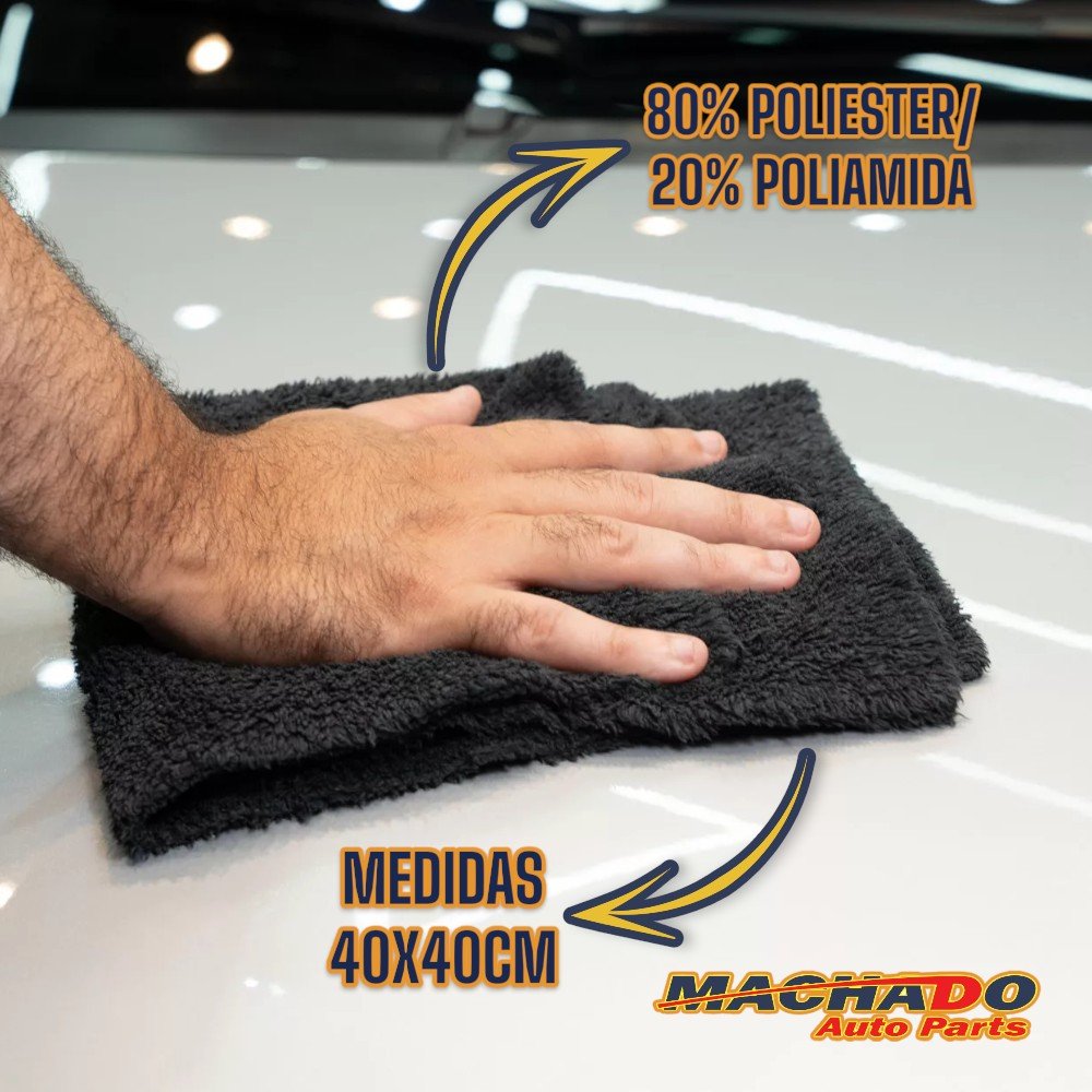 A Toalha de Microfibra Felpuda contém em sua composição microfibras de poliéster e poliamida que proporciona um alto poder de absorção. Seu tecido de alta durabilidade remove camadas de ceras e polidores sem riscar a pintura e proporciona um excelente acabamento.