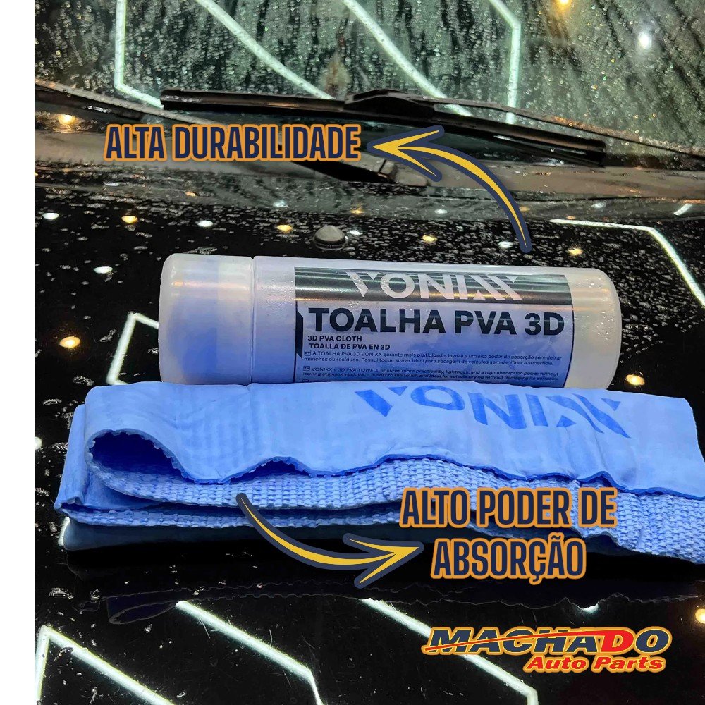 A Toalha de Secagem PVA 3D 64x43cm Vonixx garante mais praticidade, leveza e um alto poder de absorção sem deixar manchas ou resíduos.