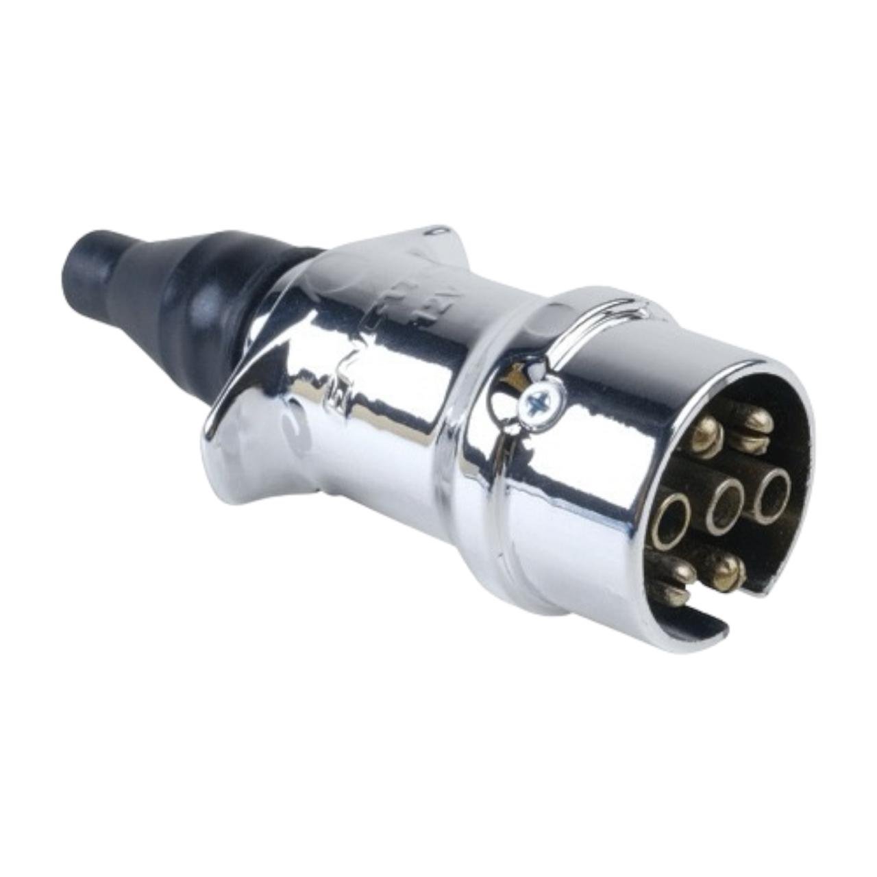 Tomada Macho Engate Reboque Cromada 6 Polos Redonda 12v Alumínio Polido