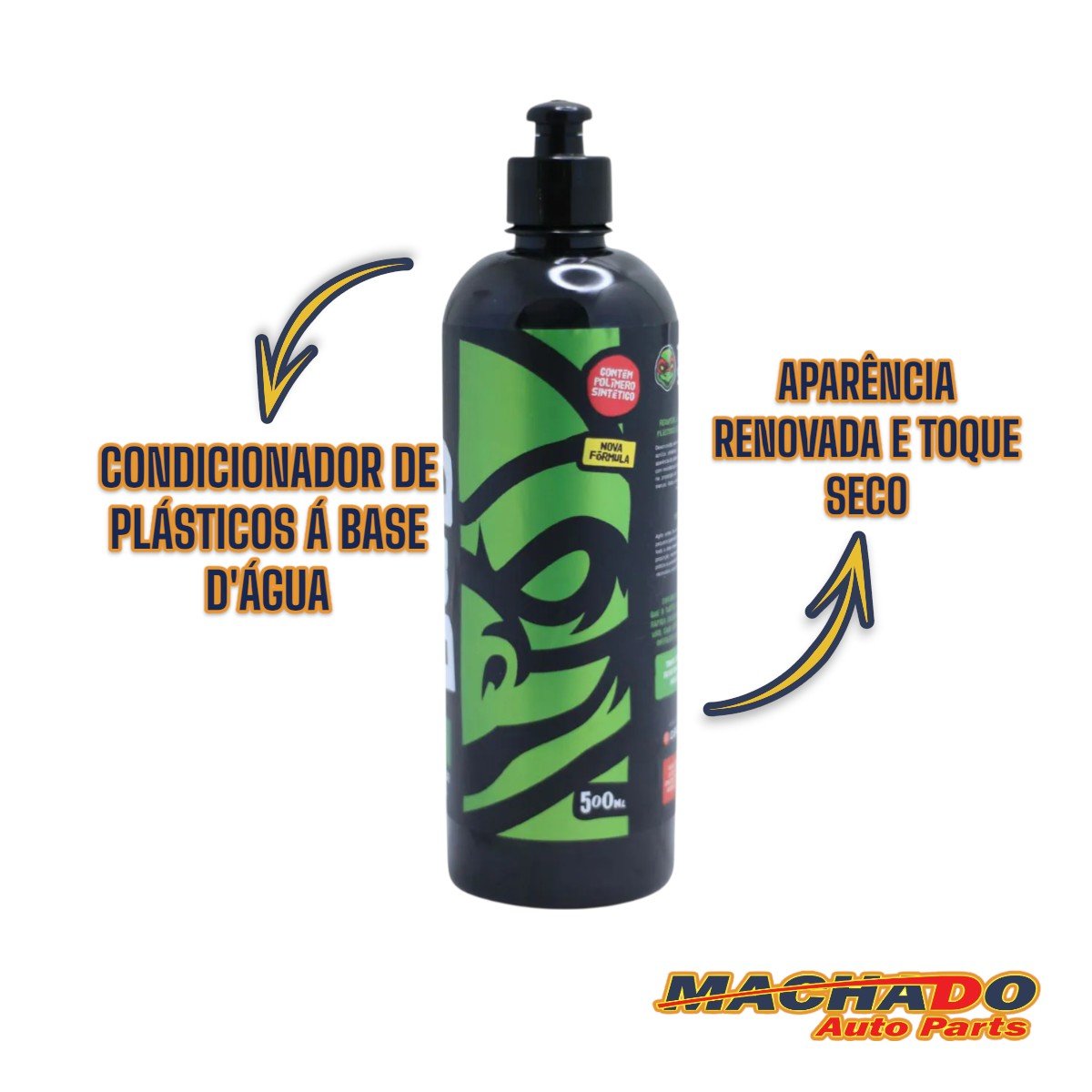 Desenvolvido sem solventes prejudiciais e com base acrílica sintética, o produto hidrata e renova a aparência do plástico de forma eficiente, duradoura e com alta resistência à água. O produto pode ser diluído em pistolas na proporção de 1:3, ou utilizado para aplicação manual. Após a aplicação, apresenta toque seco e aspecto original.
